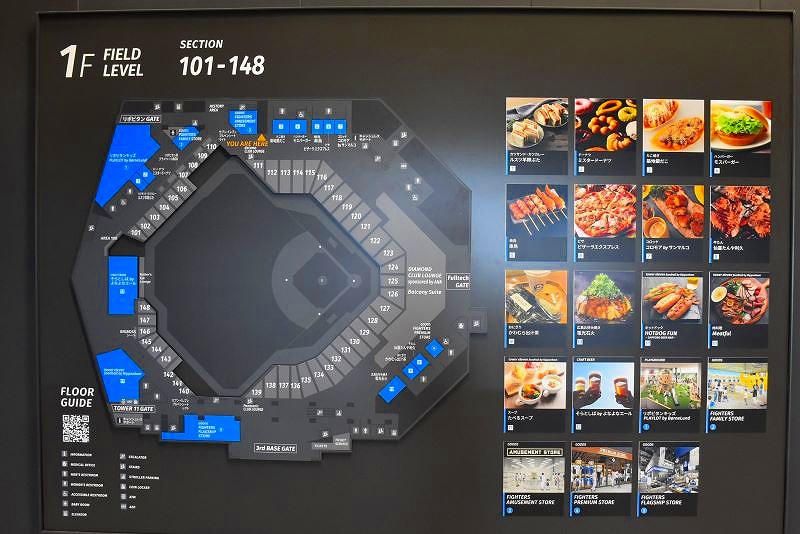 「エスコン」という不動産会社が10年以上50億円以上とも言われる契約で獲得した球場名もちろんそうですが、各出入口(ゲート)やボックスシートのあちこちに企業名が冠になっています。
